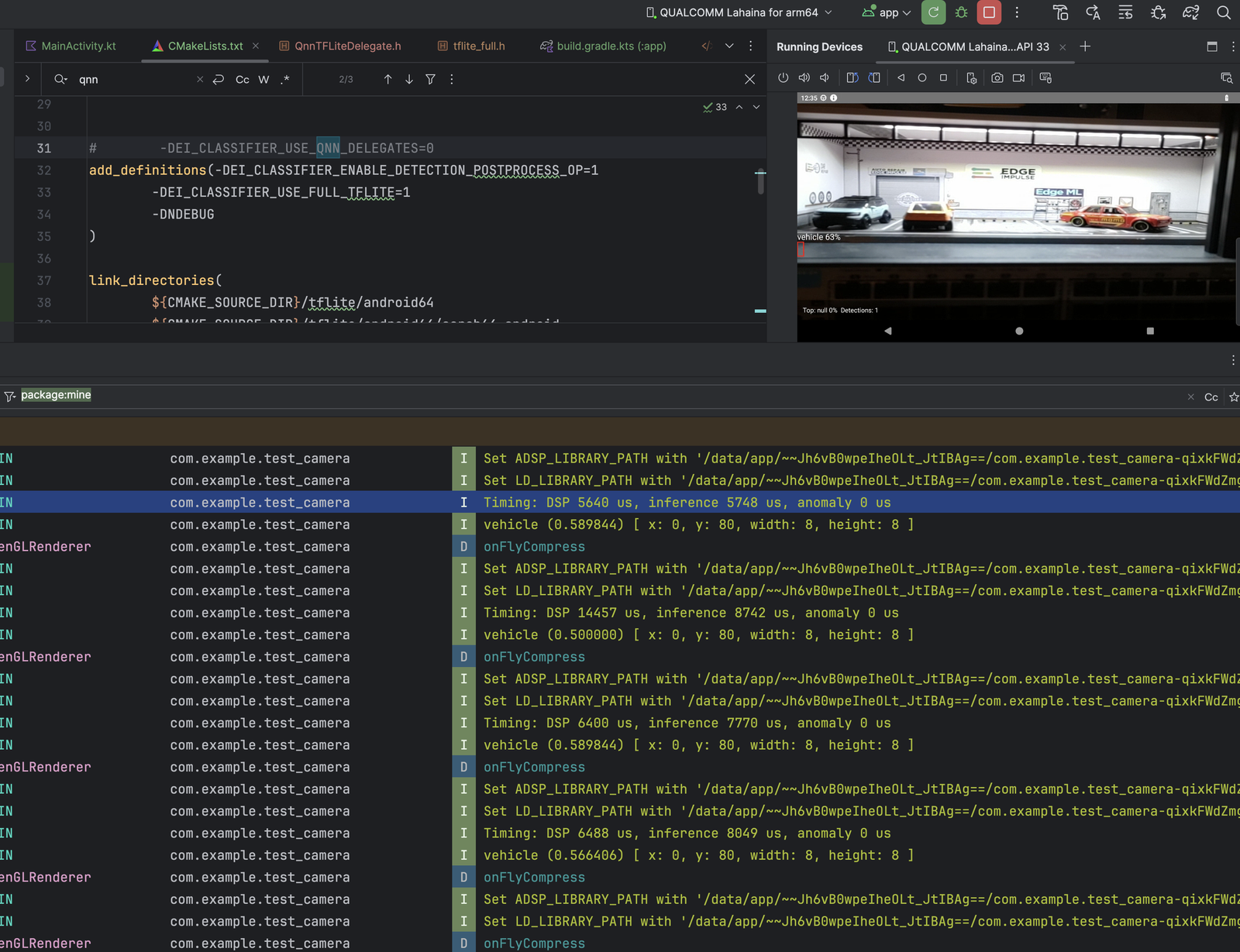 This tutorial builds on the Camera Inference tutorial. You’ll add QNN hardware acceleration to leverage Qualcomm’s Hexagon NPU for significantly faster inference.