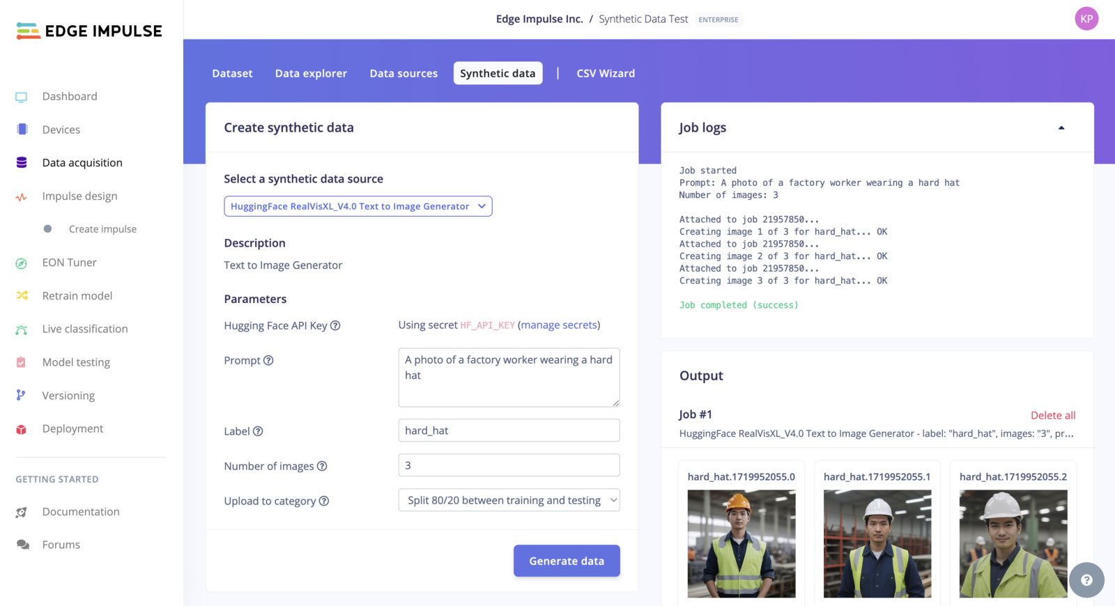 - In your Edge Impulse project, choose Data acquisition > Synthetic data.