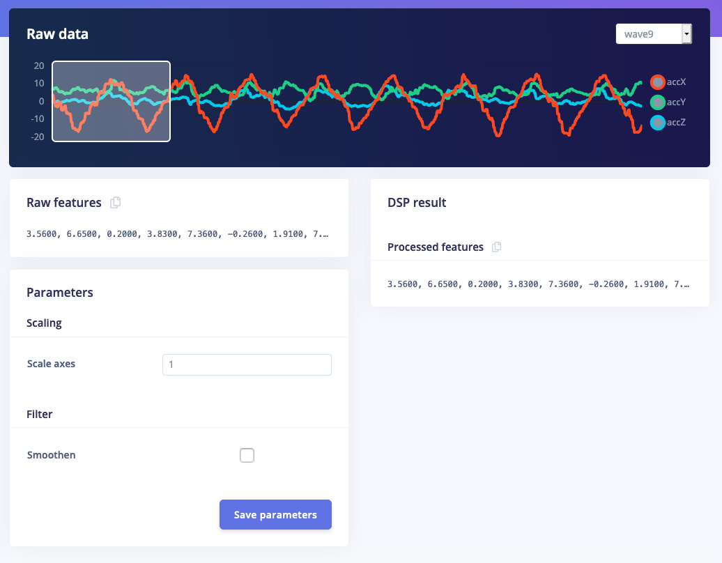 With good feature extraction you can make your machine learning models smaller and more reliable, which are both very important when you want to deploy your model on embedded devices. With custom processing blocks you can now develop new feature extraction pipelines straight from Edge Impulse. Whether you’re following the latest research, want to implement proprietary algorithms, or are just exploring data. For inspiration we have published all our own blocks here: edgeimpulse/processing-blocks. If you’ve made an interesting block that you think is valuable for the community, please let us know on the forums or by opening a pull request. We’d be happy to help write efficient native code for the block, and then publish it as a standard block!Parameters.json format