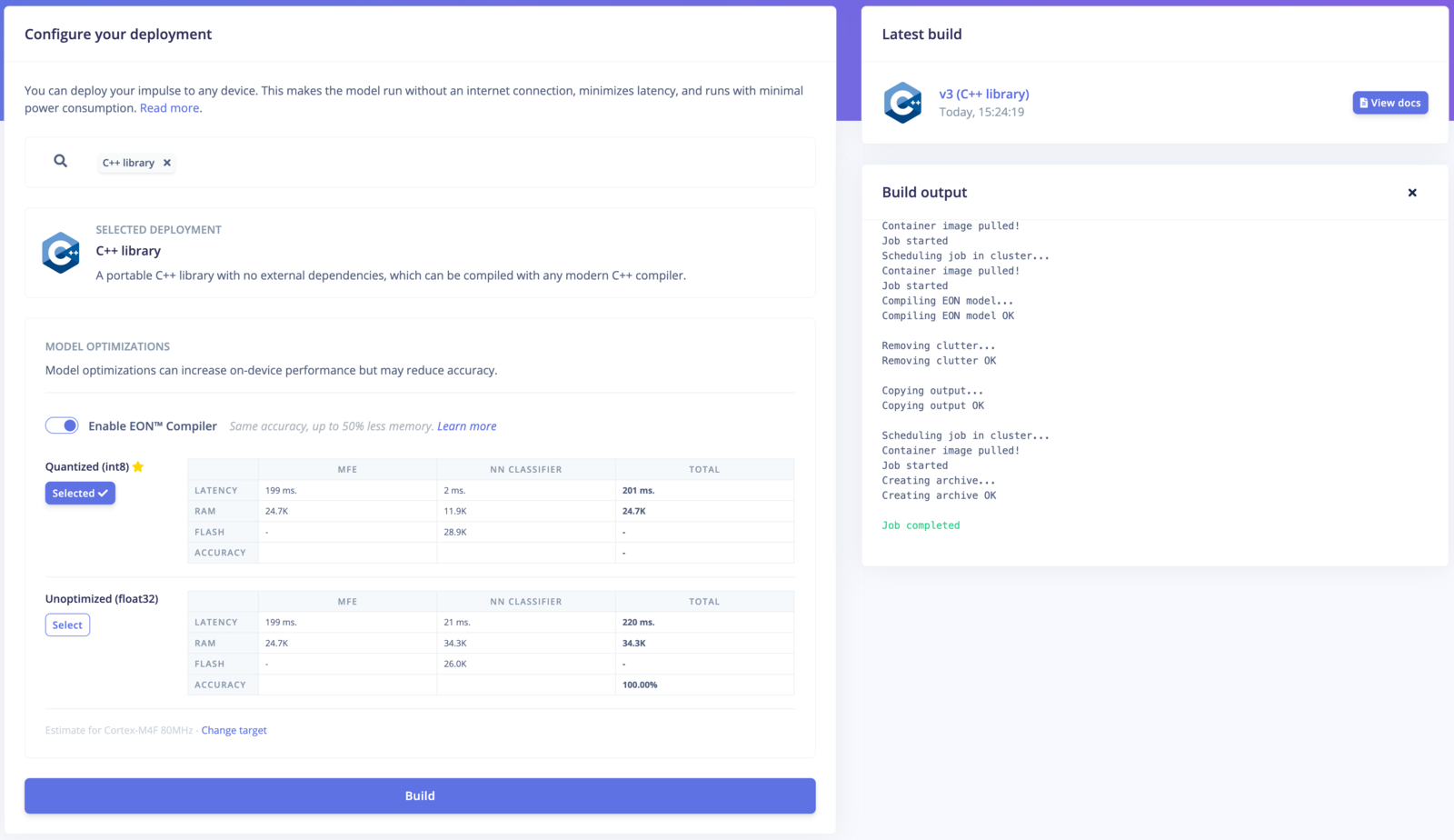 Similarly by default the EON compiled model is used, if you want to use full tflite then add the option --full-tflite and be sure to include a recent version of tensorflow lite compiled for your device architecture in the root of your project in a folder named tensorflow-lite