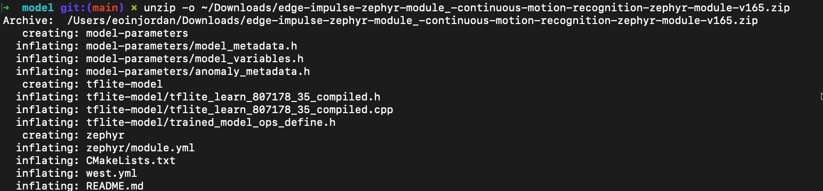 You have successfully deployed an IMU-based Edge Impulse model on Zephyr RTOS! You can now extend this example by:Next Steps